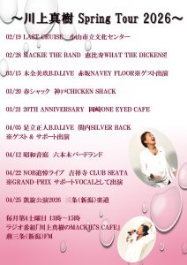 川上真樹 Spring Tour 2026(2/19〜4/25)が発表されましたっ! 詳細がまだ決定していない会場もありますので是非HP、各SNSをPls catch up with us!!