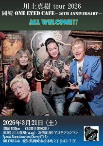 03/21『川上真樹tour2026 @ 岡崎ONE EYED Cafe詳細決定!!』(アーティス島より)
