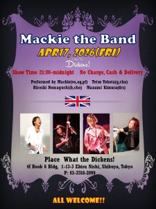 Mackie with the Band will be held “Spring Gig” @ What the Dickens!, Ebisu,Tokyo!!